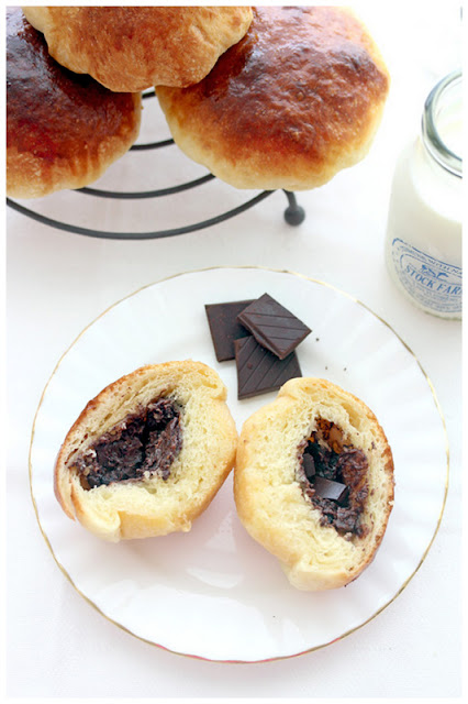 Those who tried the brioches seemed to like it though. I didn't quite had enough chocolate to wrap the dough with, thus I decided to add Nutella too. It is best to eat these brioches warm, together with a glass of cold milk to offset the sweet filling nestled deep within.