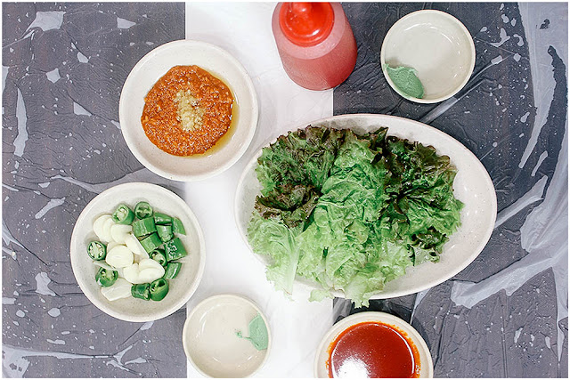 In Japanese cuisine, the most common variety of fishes in sashimi is mostly of salmon and tuna. Sashimi in Korean cuisine is known as 회 (pronounced hwe), and the Koreans enjoy having whatever is fresh and in season I guess, for I have no idea what that platter above contain. We ended up ordering a platter of hwe, and I have no idea what we got except for Salmon. Ha.